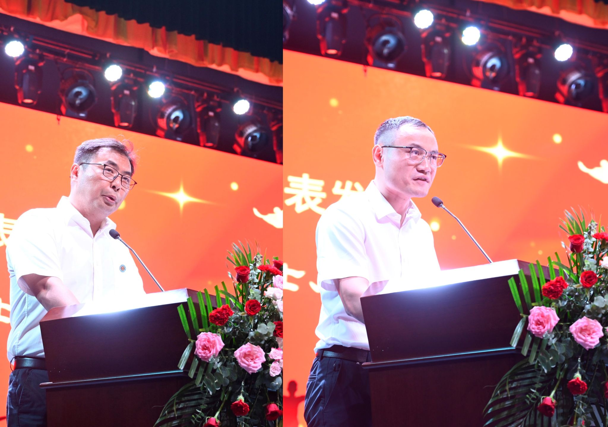 何振代表学校党委行政向为学校事业发展倾注智慧和心血的全体教职员工、离退休老同志致以节日的问候和衷心的感谢,并向受表彰的先进个人表示热烈的祝贺和崇高的敬意。他全面回顾了过去一年学校在教师队伍建设、教学科研、学科专业发展、条件保障等方面的显著成效。他指出,一年来,全校教师以习近平总书记关于中国特有的教育家精神的重要论述为指引,以赤诚之心、奉献之心、仁爱之心投身教育事业,主动服务湖南省“三高四新”美好蓝图,奋力谱写了教育强省、人才兴校的生动实践。