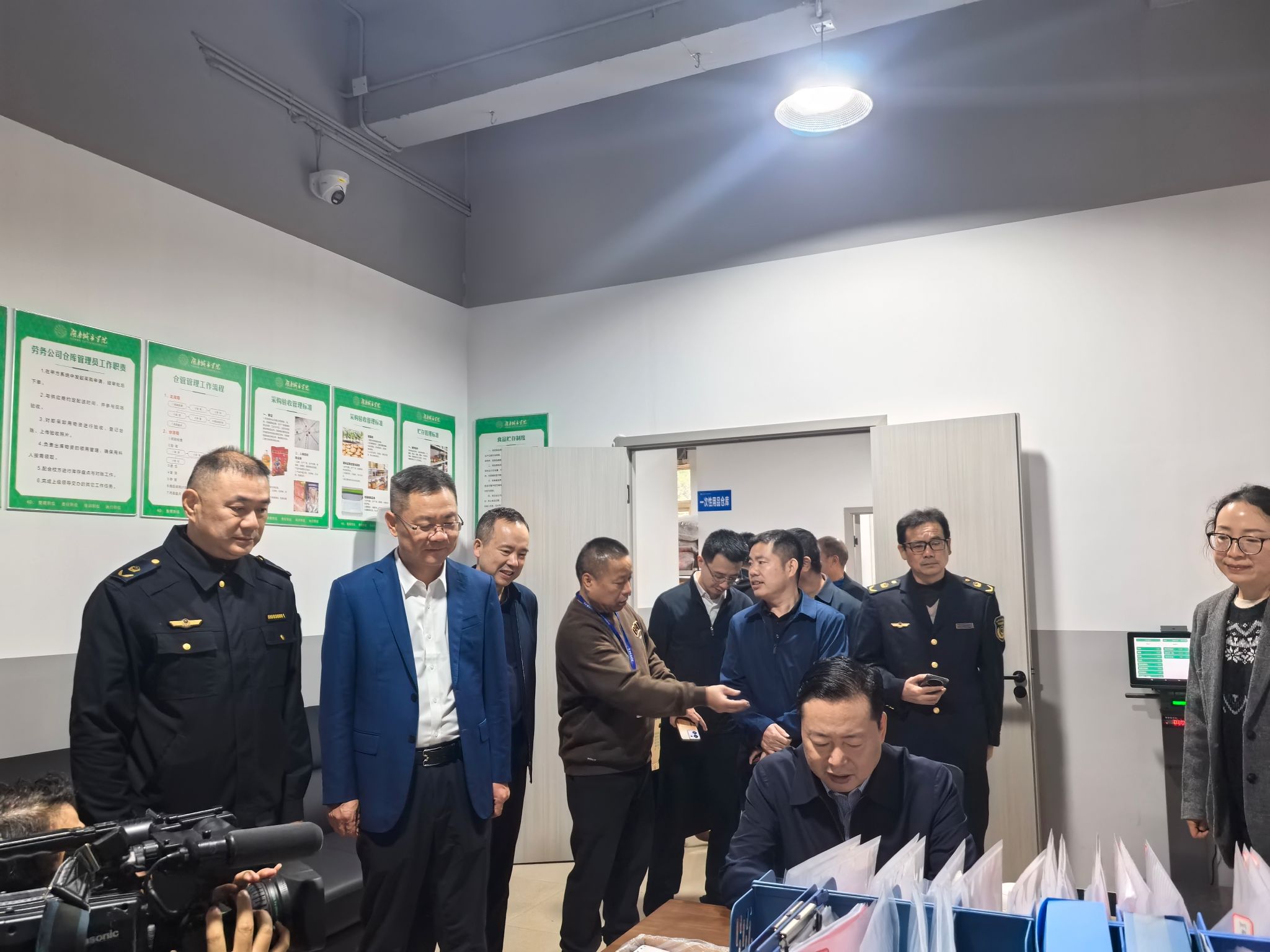 熊炜一行实地察看了学校堂食门店、食堂仓库、食品加工间、留样间等场所,详细了解经营状况、食品安全管理台账与追溯机制、“两个责任”制度落实等情况,听取了学校对食品安全管理制度建设、进货查验、生产流程等情况的汇报。