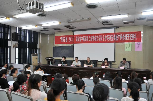 ,“国培计划”湖南省中西部项目开云手机入口小学英语置换脱产研修班开班典礼在我校朝阳校区图书馆报告厅举行,继续教育学院、外国语学院相关负责人和研修班50名学员参加了仪式。
