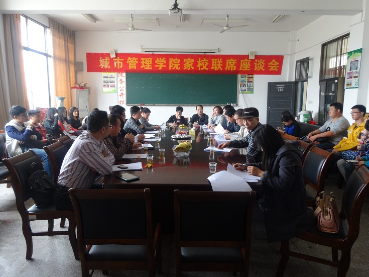 召开“家校联席会议”是城市管理学院为进一步深入开展好党的群众路线教育实践活动,结合学院自身特点确定的群众路线教育实践活动自选动作之一。学院领导、家长代表、班主任代表、学生代表和全体辅导员参加会议。会议由党总支副书记郭绚霞主持。