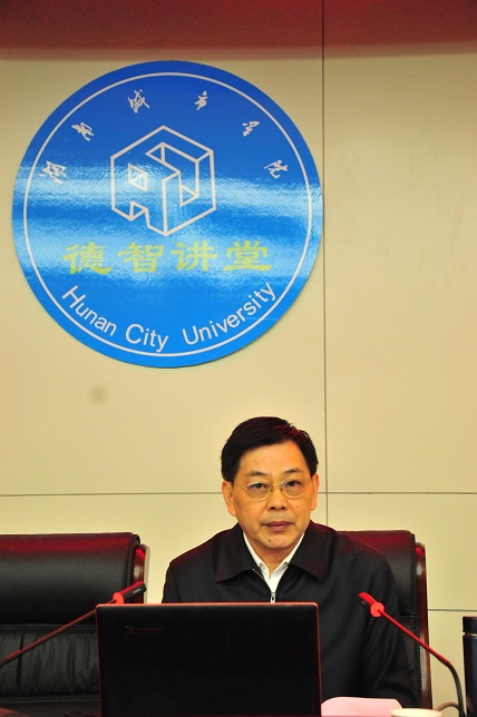 (本网讯)为引导全校党员干部更加积极地投身教育实践活动,自觉践行党的群众路线,424日上午,学校在逸夫图书馆报告厅举行第二场群众路线教育实践活动专题辅导报告会,特邀湖南省委党校常务副校长、湖南行政学院常务副院长徐晨光教授做题为《党员干部要做践行群众路线的模范》的专题辅导报告。学校党委中心组成员、副科级以上干部,党总支、直属支部委员,教工党支部书记,学生党支部书记,马克思主义学院全体教师,离退休党总支老同志代表等共400余人出席报告会。报告会由学校党委副书记、校长李建华教授主持。