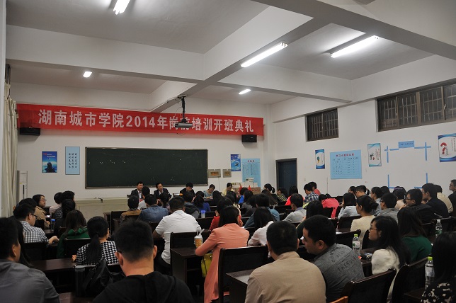 (本网讯)9月20日上午,益阳地区2014年新进高校教师岗前培训班开班仪式在我校信息楼招聘室举行。校党委副书记、副校长龚卫明,湖南工艺美术学院、益阳医学高等专科学校、益阳职业技术学院、我校人事处相关负责人以及四所高校新进教师参加了开班典礼。典礼由我校人事处处长徐习军主持。