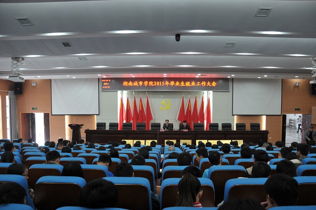 下午,学校2015年就业工作大会在图书馆报告厅举行。校长李建奇、副校长汤放华以及就业工作领导小组成员、二级学院党政主要负责人、分管学生工作领导,全体辅导员、毕业班班主任、获奖教师和学生代表,团委、学生处、招生就业处全体工作人员参加了会议。