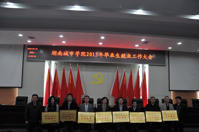 汤放华副校长在大会上作了题为《把握新常态,争取新作为,齐心协力开创我校毕业生就业创业工作新局面》的报告。报告回顾了2014年毕业生就业工作基本情况和主要成绩,总结了工作的主要经验与体会,并对2015年学校毕业生就业工作提出了工作设想。2014年我校荣获湖南省大学生就业创业示范校称号。