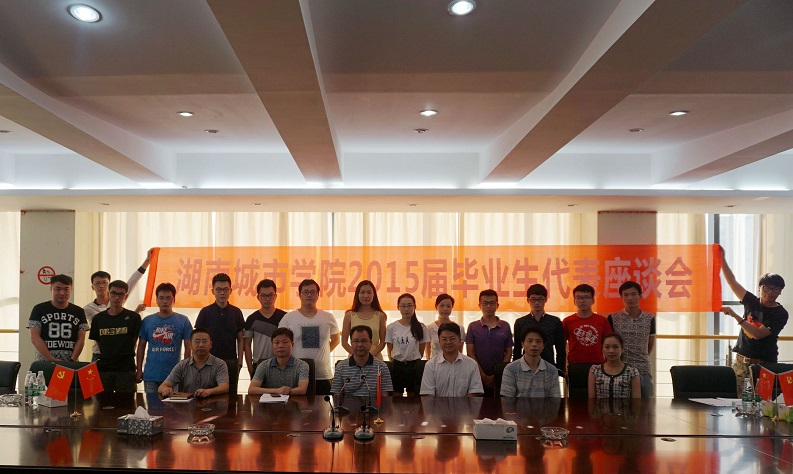 ,学校在办公楼三楼会议室召开了2015届毕业生座谈会。校长李建奇、副校长汤放华以及教务处、学生处、团委相关负责人,15名优秀毕业生代表参加座谈。
