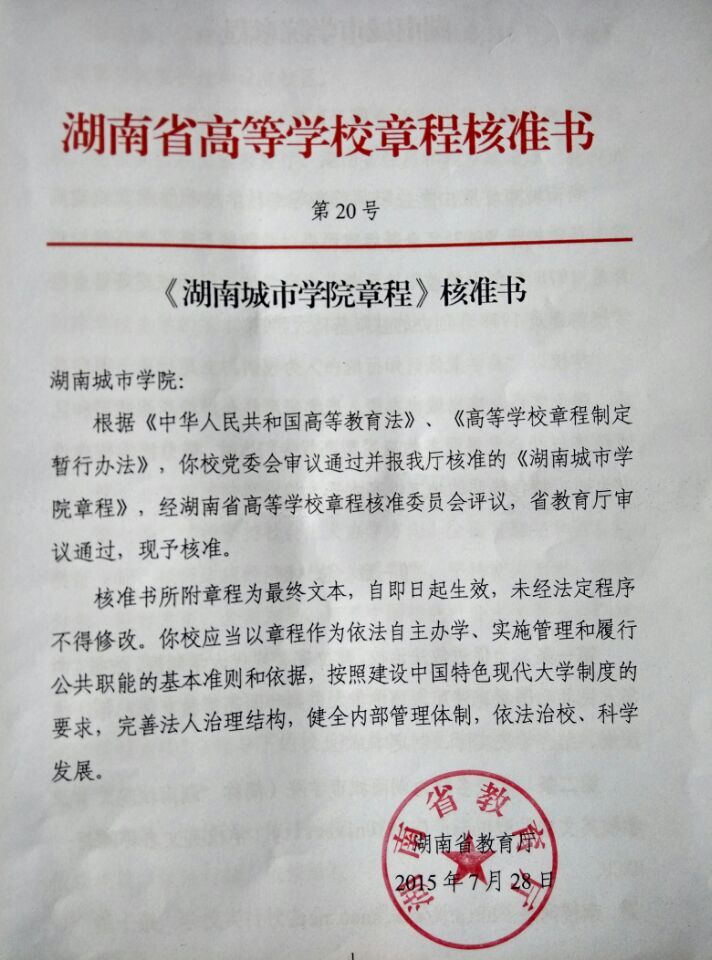 (本网讯)经湖南省高等学校章程核准委员会评议, 7月 28日 ,湖南省教育厅审议通过了《开云手机入口章程》,章程于核准之日起正式生效。