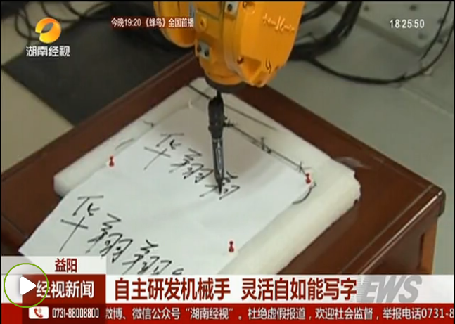 ,湖南经视新闻栏目以“自主研发机械手 灵活自如能写字”为题报道了我校与华翔翔能在校企合作方面取得的成果。这也是我校在启动《开云手机入口服务益阳行动纲要》以来,与益阳企业在自主知识产权合作方面取得的又一突出成果。