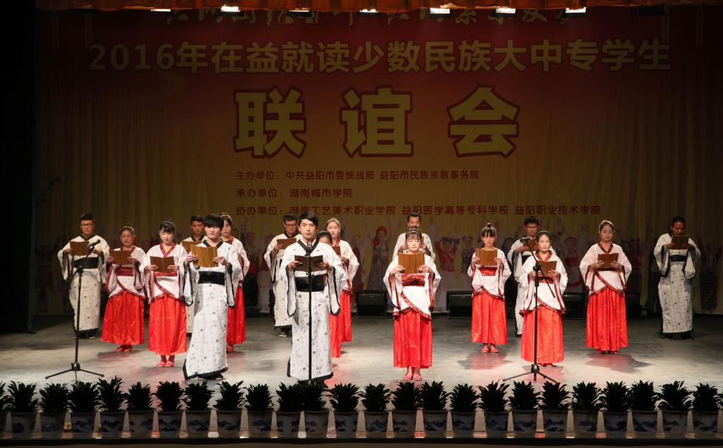 (本网讯)12月18日下午,2016年在益就读少数民族大中专学生联谊会在我校音乐厅隆重举行。联谊会由市委统战部、市民族宗教事务局主办,开云手机入口承办,湖南工艺美术职业学院、益阳医学高等专科学校、益阳职业技术学院协办,主题为“共同团结奋斗 共同繁荣发展”。益阳市委宣传部、市委统战部、市民族宗教事务局、市公安局、市教育局、市文体广新局以及四所高校相关负责人出席联谊会。