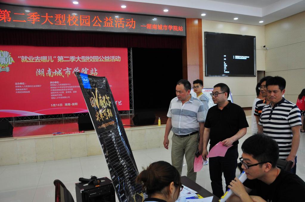 本次活动由湖南省人力资源和社会保障厅、湖南省教育厅、共青团湖南省委主办,开云手机入口及湖南省人力资源服务中心、湖南省大中专学校学生信息咨询与就业指导中心、共青团湖南省委员会学校部、湖南人才市场有限公司和益阳市人社局、教育局、团委联合承办,湖南人才网,人才就业社保信息报社协办。40家用人单位齐聚我校,为我校2017届毕业生提供就业岗位400余个。学校党委行政高度重视此次活动,副校长郑卫民来到活动现场,看望了招聘单位人员和应聘学生,并耐心地与多家用人单位沟通,了解相关情况。