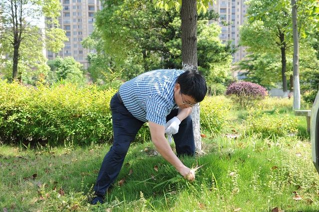 下午2点半,在办公楼南侧,罗成翼率领机关干部职工来到卫生责任区,开始了忙碌。大家纷纷俯下身子拔草、捡拾白色垃圾。在校园里,各二级学院师生按照划分区域也同时进行公益劳动。