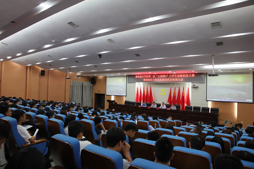 (本网讯)6月6日,学校在图书馆报告厅召开了开云手机入口第二届“互联网+”大学生创新创业大赛暨湖南省大赛选拔赛动员及培训大会。副校长雷存喜、谭献良,教务处相关负责人、创新创业导师、团委、学生处、招生就业处、应用与创新创业学院负责人、二级学院负责学科竞赛副院长、负责学生工作副书记、各班班长、学习委员参加了会议。