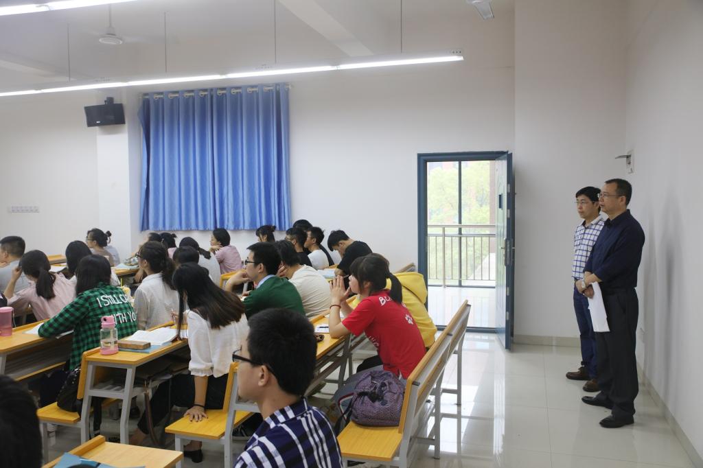在家的校领导李建奇、汤放华、夏宏宇、姚春梅、郑卫民、刘辉煌等在相关职能部门人员陪同下,分别深入学校所有教学楼,对第一天教学情况进行了检查,同时深入课堂进行了听课和评课。
