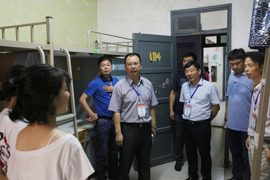 校长李建奇一行在宿舍看望新生