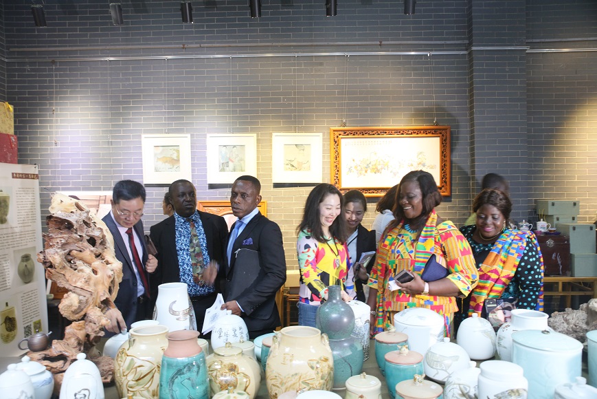 欢迎仪式前,代表团还参观了我校湖南新型智慧城市研究院、羊舞岭窑陶瓷艺术展和湖湘艺术文化馆。