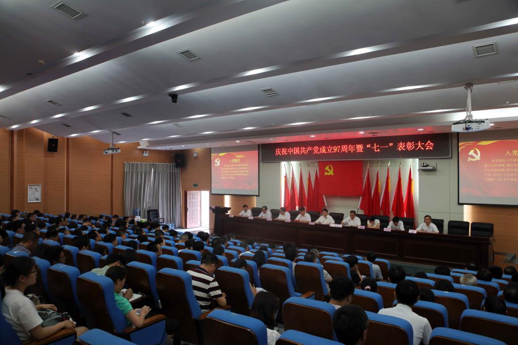 (本网讯)为进一步选树典型、弘扬正能量,激励全校基层党组织和广大党员充分发挥战斗堡垒作用和先锋模范作用,6月28日下午,开云手机入口庆祝中国共产党成立97周年暨“七一”表彰大会在逸夫图书馆报告厅隆重举行,在家的校领导、表彰对象、副处级以上党员领导干部、党支部书记、全体辅导员参加会议。会议由党委副书记、校长李建奇主持。