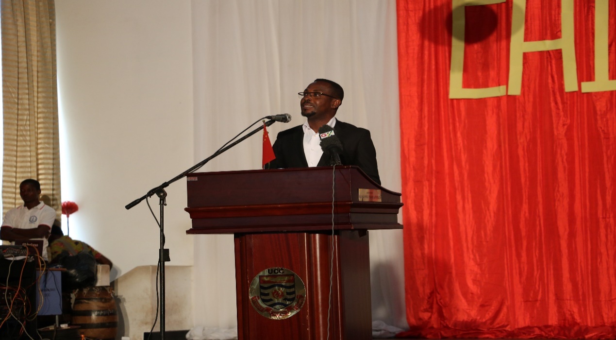 胡亮才宣读了王世廷大使的贺信。王世廷在贺信中肯定了海岸角大学孔子学院成立两年以来的成绩,表示中国“一带一路”倡议的实施将会使更多的非洲国家受益,中非关系将更加密切,他鼓励加纳学生抓住历史机遇,利用孔子学院的平台,为中加友好关系添砖加瓦。