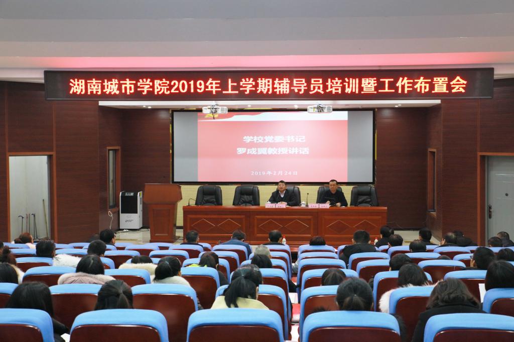 (本网讯)2019年2月24日,我校2019年上学期辅导员培训班暨学生工作布置会在建规楼121学术报告厅举行。学校党委书记罗成翼出席并讲话。各二级学院党委(总支)副书记、全体辅导员及学生工作部(处)、团委、招生就业处全体人员参加了培训。培训班由副校长雷存喜主持。