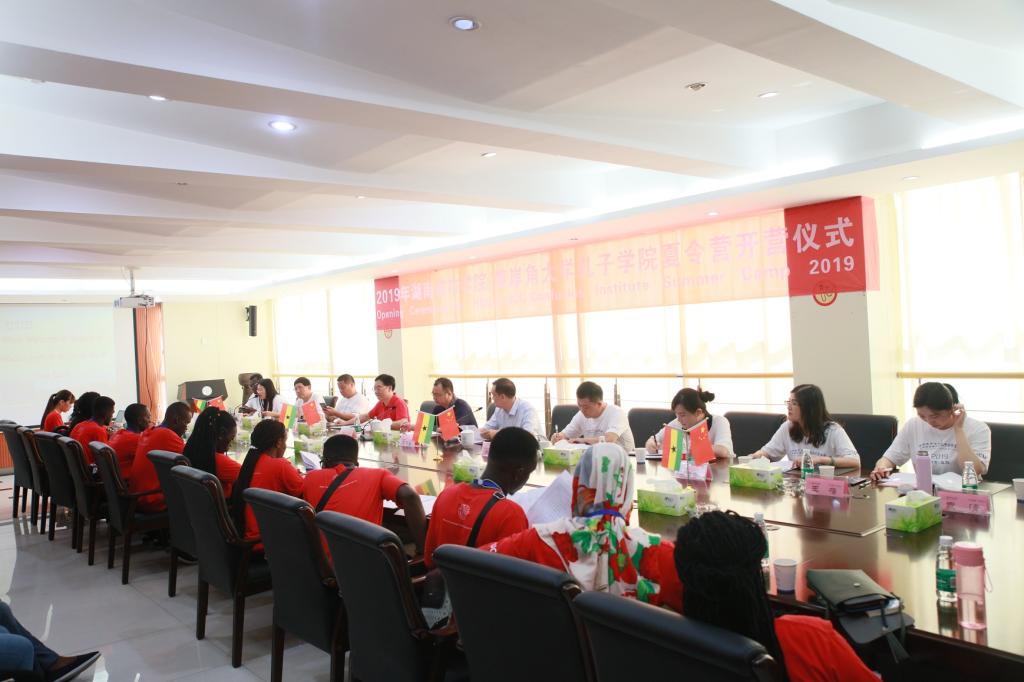 (本网讯)2019年8月2日下午,开云手机入口/加纳海岸角大学孔子学院“华夏·洞庭”——中国文化夏令营开营仪式在办公楼一会议室举行。校长李建奇出席开营仪式并发表讲话,参加开营仪式的有来自加纳海岸角大学孔子学院的全体营员,出席开营仪式的还有学校副校长雷存喜,加纳海岸角大学孔子学院中方院长、学校国际交流处、保卫处、基建和后勤管理处、人文学院等各单位的负责人,老师以及学生志愿者代表。开营仪式由雷存喜主持。