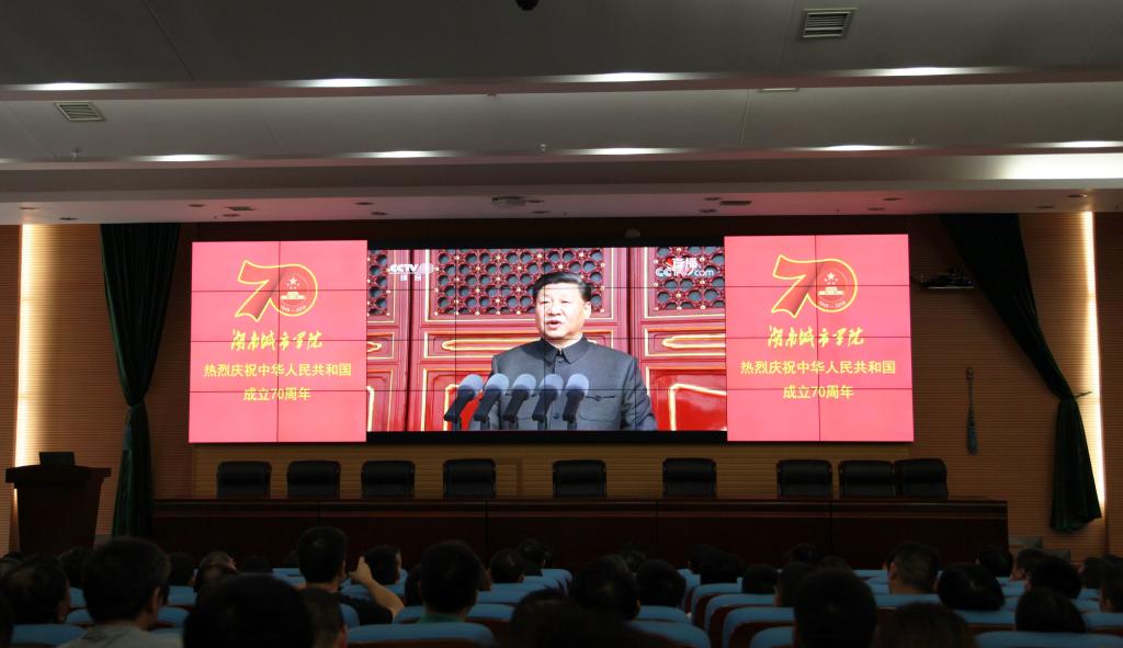 “56门礼炮,70响轰鸣。不仅是历史跃动的脉搏,更象征着庆典是新中国70年成就的集中展示。”党委书记罗成翼表示,70年的庆祝活动将新中国从站起来、富起来再强起来的历史逻辑过程充分展示。一方面有利于增强城院师生的“四个自信”;另一方面,有利于我们把我们的认识统一到国家统一的要求上来,增强广大师生对党史和新中国史学习的自觉性和坚定性,坚定地走好中国特色社会主义道路,实现一代又一代人的梦想。(文/邹盼 冷雨婷 龙雨馨 图/李苏)