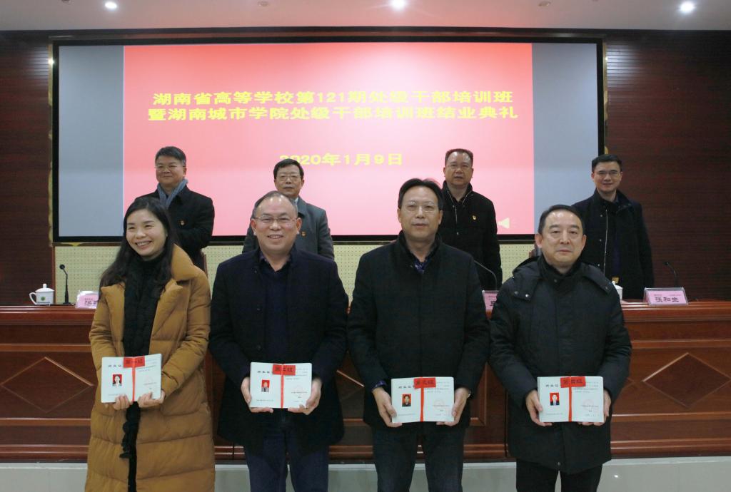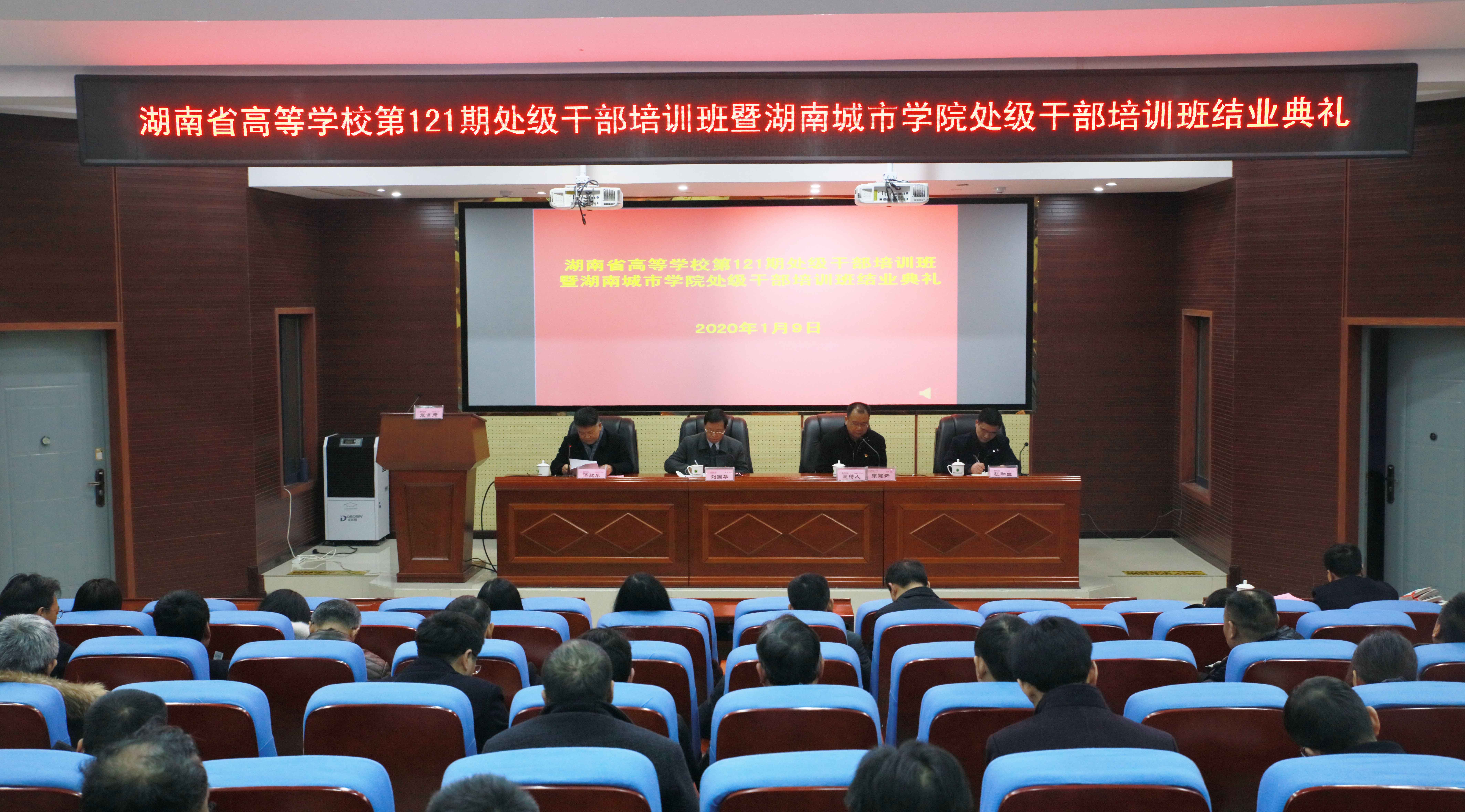 (本网讯)2019年1月9日,湖南省高等学校第121期处级干部培训班暨开云手机入口处级干部培训班结业典礼在我校图书馆报告厅举行。湖南省高校干部培训中心主任、书记,省委教育工委党校常务副校长刘国华,省高校干部培训中心副主任张和生,党委副书记汤放华,党委委员、组织部长袁志成出席。结业典礼由党委副书记、校长李建奇主持。