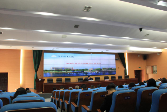 本网讯  2020年3月23—24日,2020年春季学期辅导员培训班在学校图书馆学术报告厅举行,党委书记罗成翼出席会议并讲话,副校长雷存喜主持开班仪式,学生工作部、招生就业处、团委全体人员和各二级学院党委(党总支)书记、副书记及全体辅导员参加。