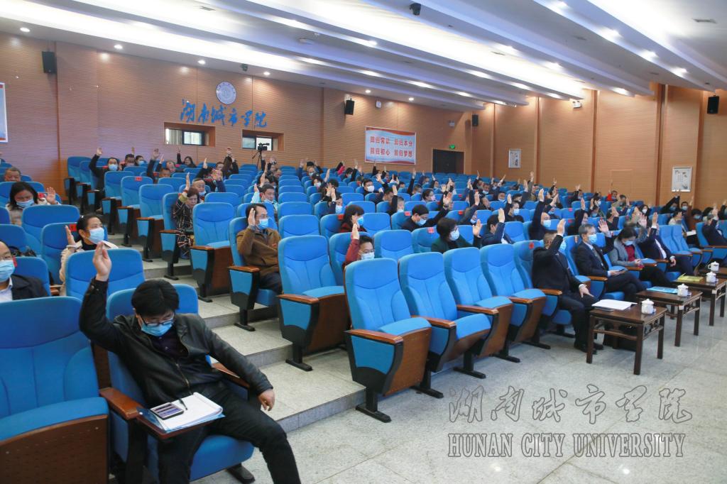 下午召开的闭幕式上,经与会代表举手表决,大会审议通过了学校工作报告、工会工作报告、财务工作报告、工会经费审查报告。