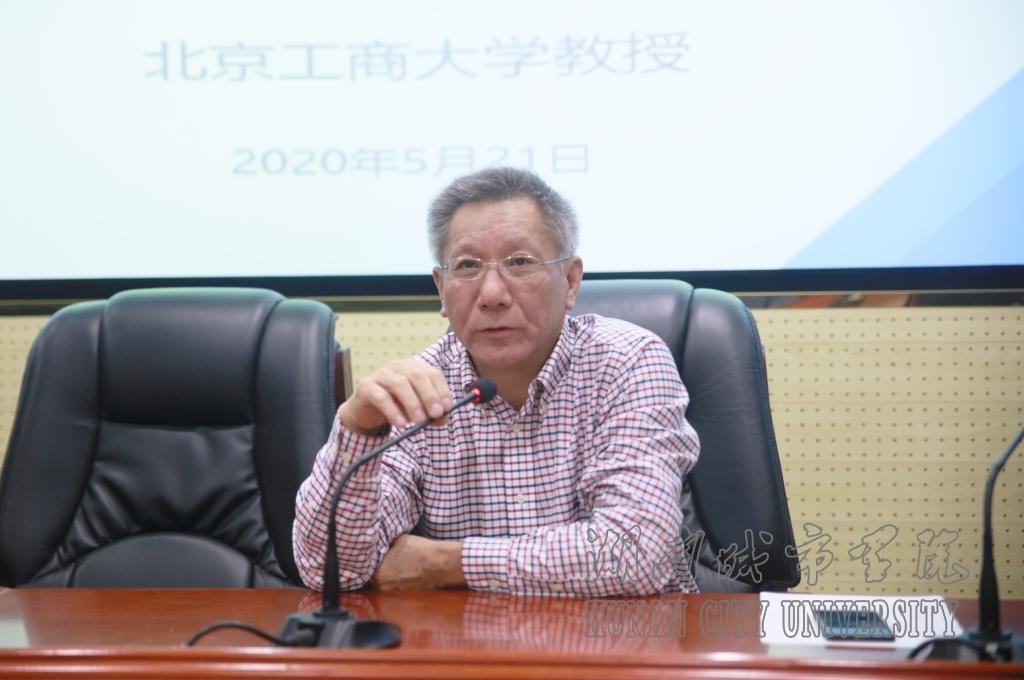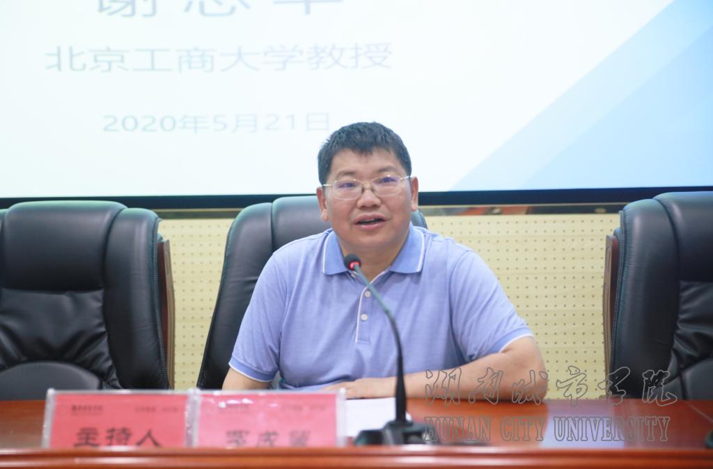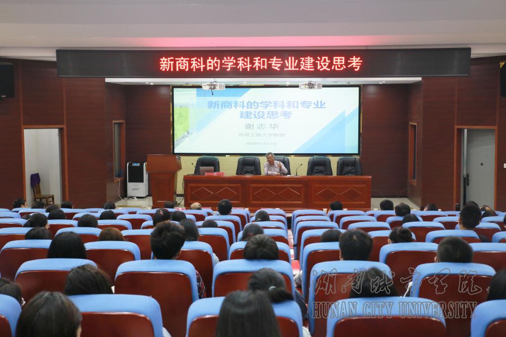 本网讯(通讯员 周琼)2020年5月21日,北京工商大学谢志华教授应邀来校,在建规楼121报告厅为我校师生作了题为“新商科的学科和专业建设思考”的学术讲座。校党委书记罗成翼、副校长何振,教务处、科研处、学科建设与发展规划处负责人以及相关学院师生代表百余人到场聆听讲座。讲座由罗成翼主持。
