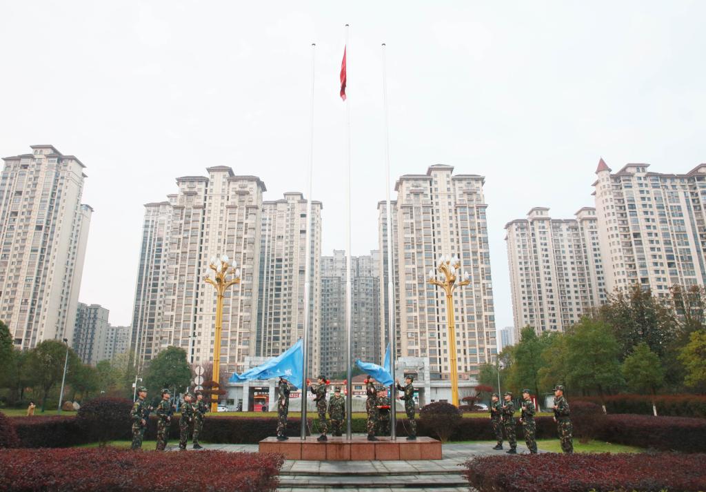 7点整,伴着令人振奋的宏伟歌声,校国旗护卫队旗手们步伐整齐的走向了升旗台。随着《义勇军进行曲》奏响,鲜艳的五星红旗冉冉升起,全体成员肃立,齐唱国歌、行注目礼,向伟大祖国母亲献上最诚挚的敬意。庄严的升国旗仪式结束后,进行了奏校歌、升校旗。