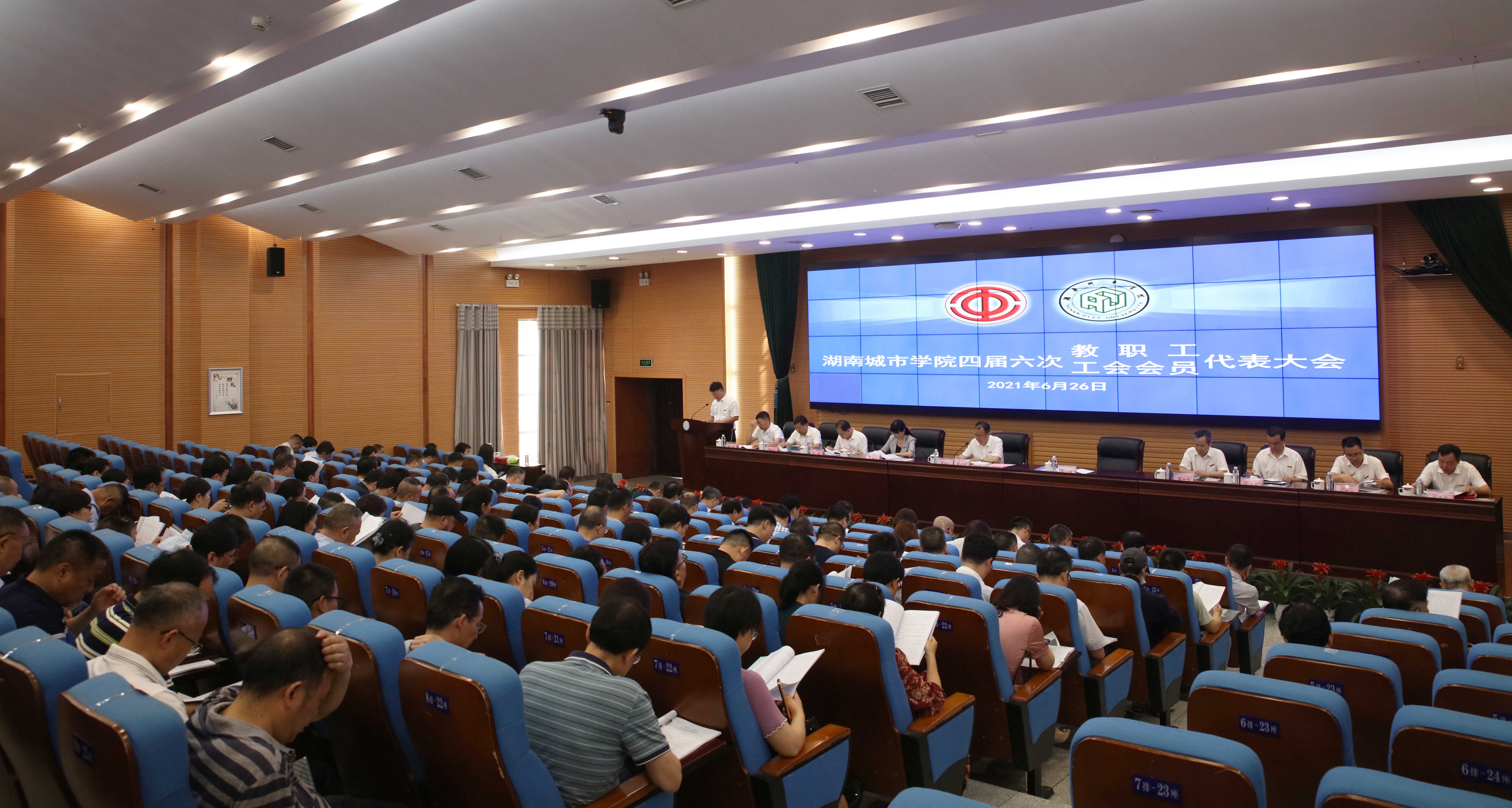 本网讯 2021年6月26日,开云手机入口第四届六次教职工、工会会员代表大会在图书馆报告厅召开。135名正式代表以及列席代表、特邀代表出席会议。校领导李建奇、汤放华、何旭娟、夏宏宇、何振、雷存喜、谭献良、袁志成、陈列尊、吕贤军在主席台就座。大会由党委书记李建奇主持。