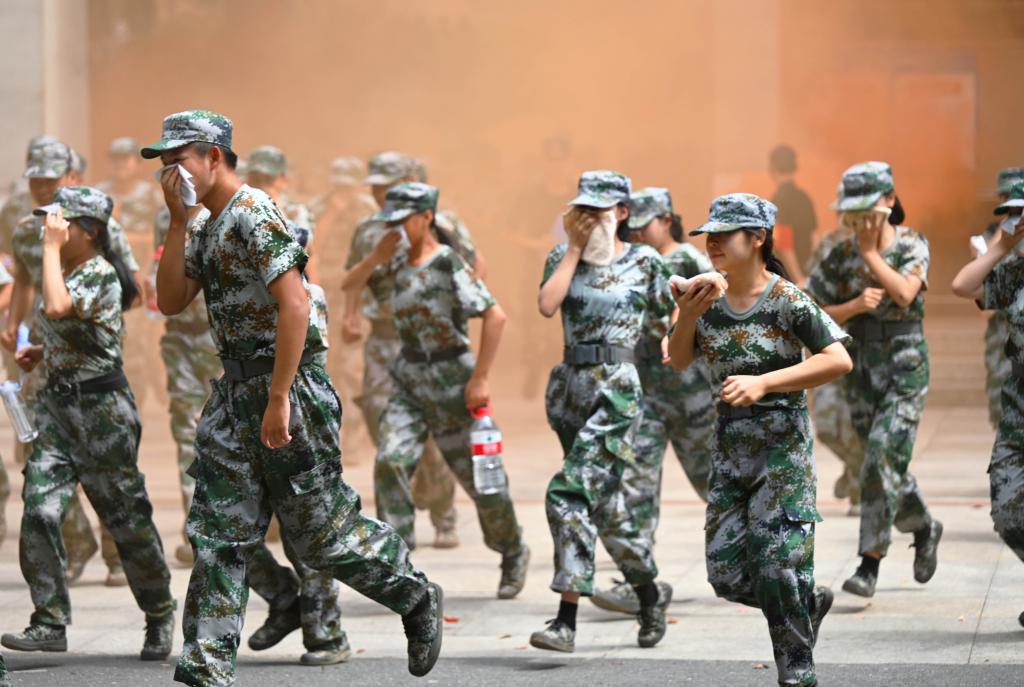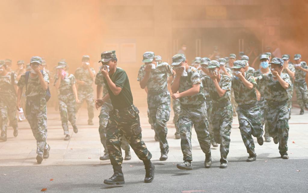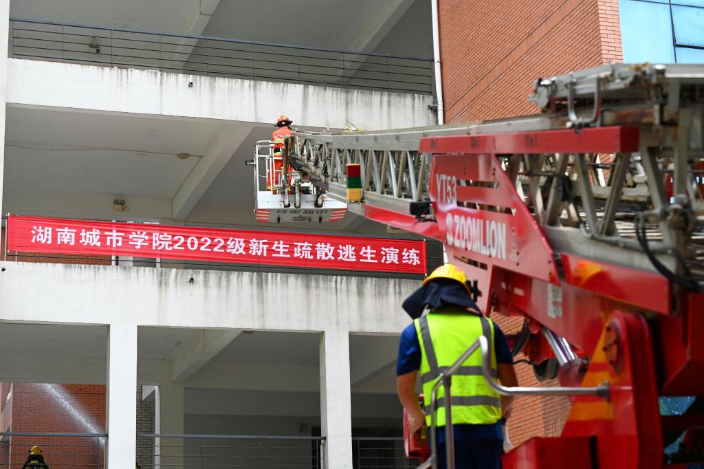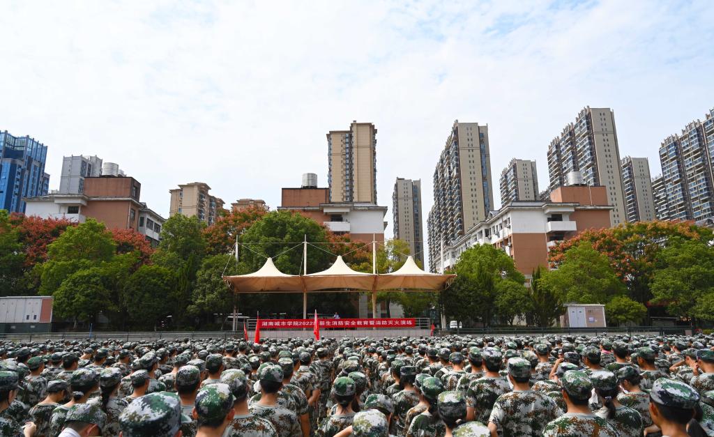 当日,学校组织2022级5900名新生进行了消防演练和消防安全讲座,这是学校每年大一新生的一堂必修课。