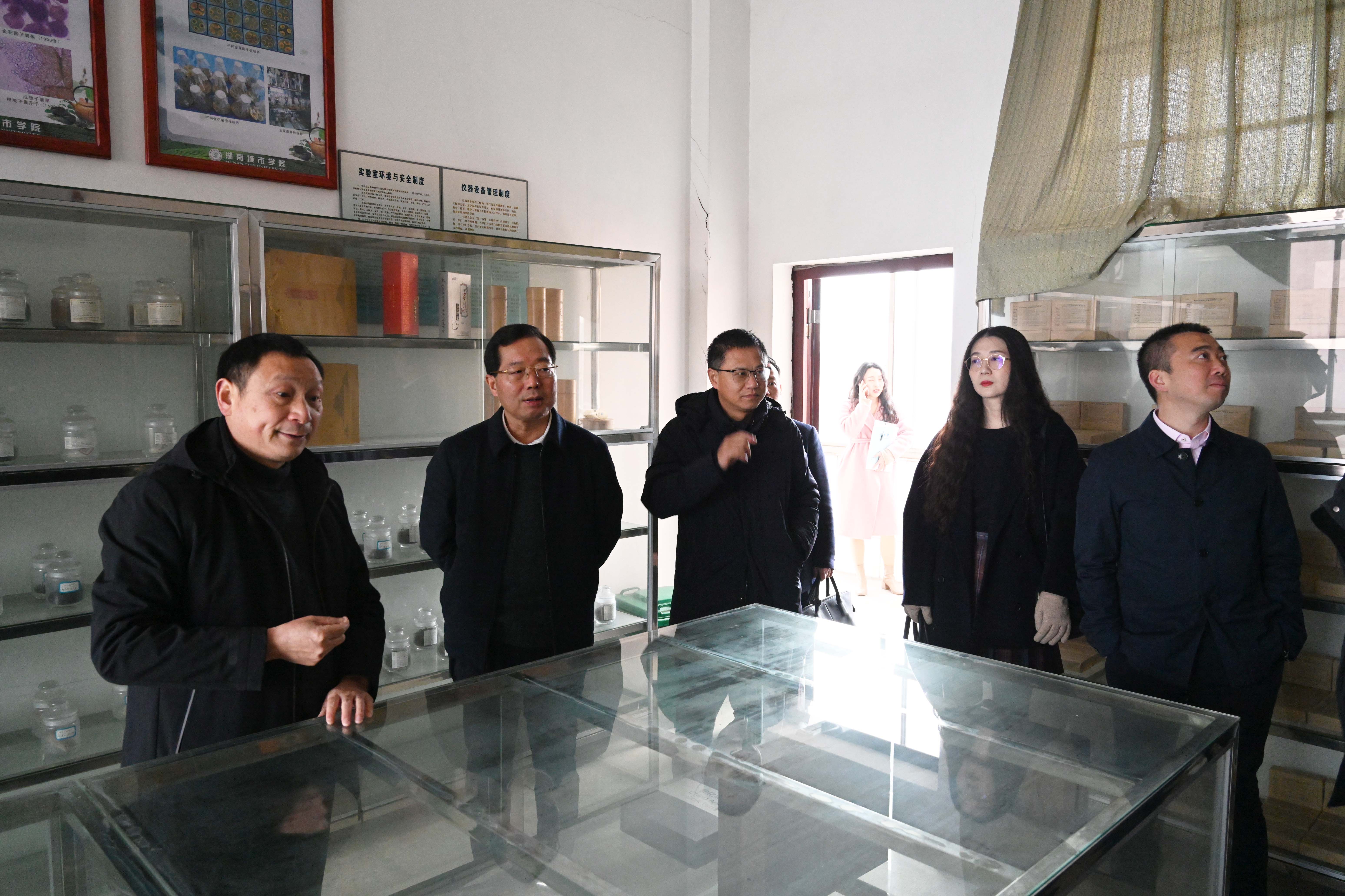 本网讯(通讯员 赵旭)2月17日,湖南省社科联党组书记、副主席(主持日常工作)胡代松一行来我校开展社科工作调研,实地走访我校“安化黑茶非遗传承基地”和“湖湘传统美术研究基地”,并召开专题座谈会。学校党委书记汤放华、副校长何振,益阳市社科联相关领导、益阳市兄弟院校科研部门主要负责人、学校科研处及相关社科类学院的主要负责人参加座谈会。
