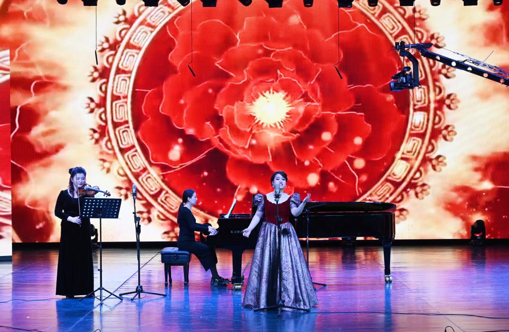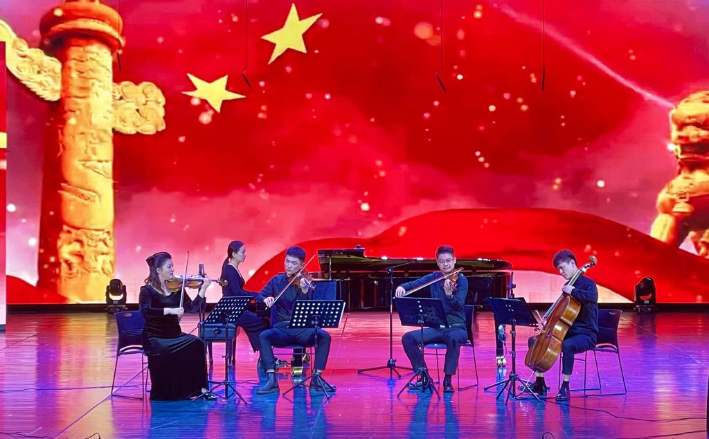 文艺汇演分为“奋斗百年路”“奋进新征程”两个篇章,以器乐合奏《光明行》激昂的旋律拉开晚会序幕,现场观众在丝竹管弦民乐演奏中领略祖国山河的秀美壮丽,重温党的光辉历史进程;弦乐四重奏《我爱你中国》、歌曲《美丽中国》、《花儿为什么这样红》、《我心中的红》表达了青年学子对祖国的无限热爱与深深祝福;“历史长河波澜壮阔,一代又一代人接续奋斗创造了今天的中国”,学子们在《如愿》中用清澈的嗓音诉说着中国人民血脉里割舍不了的情感羁绊;歌舞《八百里洞庭美如画》描绘了风光秀丽,景色如画的江南鱼米之乡;《守护》以蹁跹的舞姿,舞出了少数民族与红军之间诚挚的革命情谊;“点点星火,汇聚成炬”,《中国上场》以铿锵有力的朗诵,诠释了什么是真正的中国力量;京剧《武家坡》则用戏曲讲好中国故事,彰显文化自信;歌舞《益起向未来》、合唱《领航》表现了城院青年在坚定跟党走的路上昂首阔步,用最动听的歌声,唱出新时代最美的旋律,用最动人的舞姿,跳出新征程最炫的节拍。