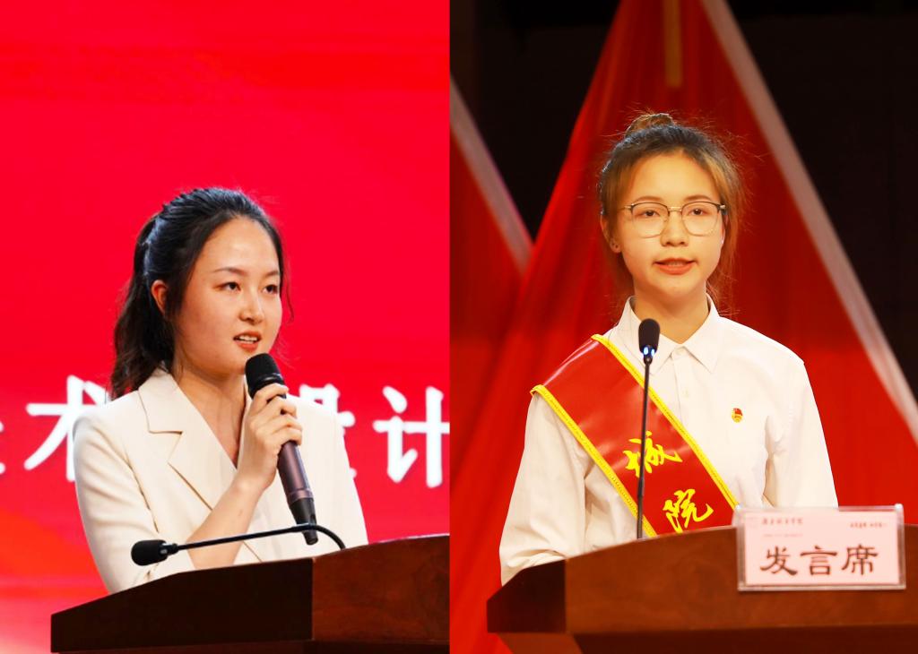 随后,参会领导为获奖先进集体及个人颁奖。第二届“城院之星”获得者、材料与化学工程学院学生夏婷,优秀教师团干代表、美术与设计学院/国际教育学院教师颜丽珍分别作了发言。