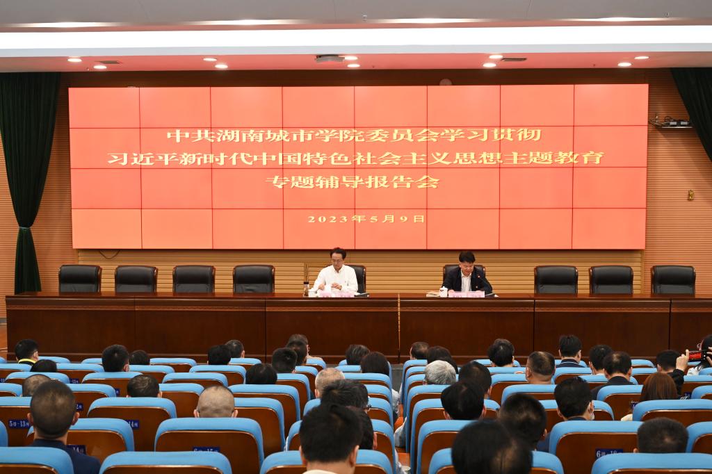 本网讯(记者 文彦波)5月9日晚,学校学习贯彻习近平新时代中国特色社会主义思想主题教育专题辅导报告会在图书馆报告厅举行。湖南省科协党组书记、常务副主席王瑰曙以“实施科教兴国战略,强化现代化建设人才支撑”为题作了辅导报告。校党委书记汤放华主持并讲话,在家的校领导、副科以上领导干部参加。