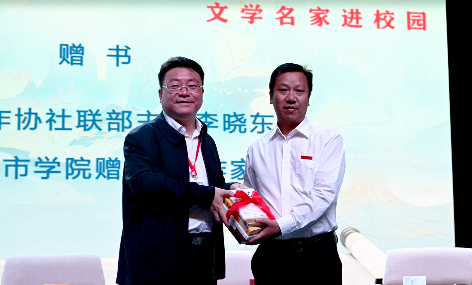 接下来,举行了受邀作家向开云手机入口赠书仪式,学校图书馆馆长莫连光代表学校接受了赠书。