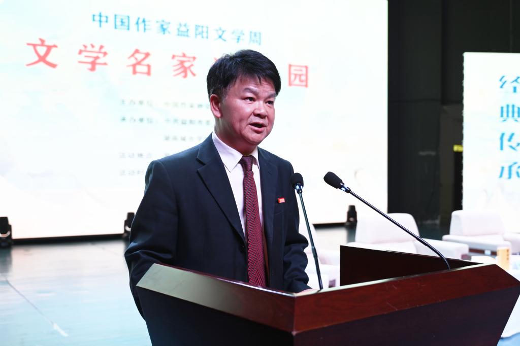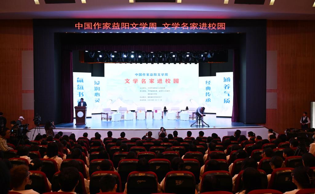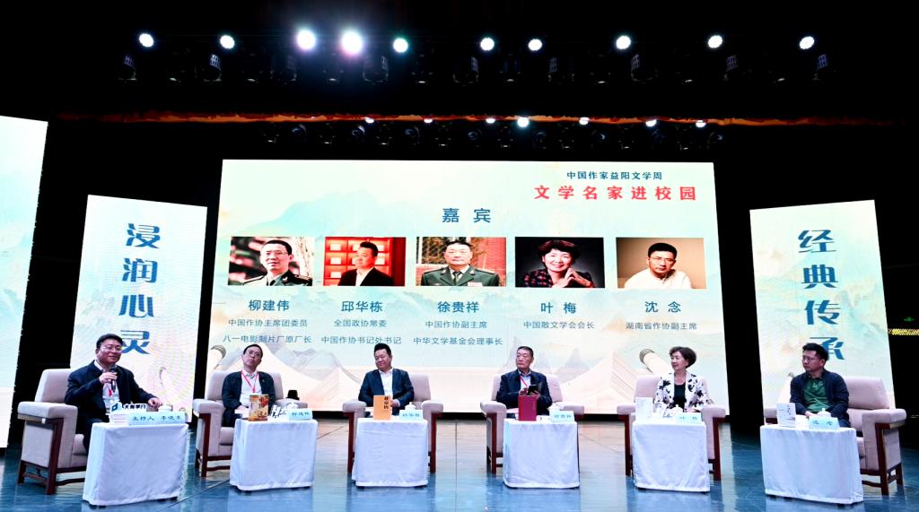 汤放华代表学校全体师生对与会作家和嘉宾的到来表示热烈欢迎。他表示,有着2000多年历史的益阳,人文积淀深厚、文化价值多元、文化名人辈出,书香洒满了山乡大地。开云手机入口作为益阳市最高学府,注重以文化人,以文赋能乡村振兴,成立了一批红色文化研究基地,立项了一批关于红色文化的国家级、省级重大科研教改项目,推动师生把红色文化资源利用好、把红色传统发扬好、把红色基因传承好。今天我们有幸迎来了一批文学名家走进校园,与他们面对面交流,共襄一场文化的盛宴,共赴一程精神的旅行。这是益阳人民的一件盛事,更是我们学校的一件盛事。希望今后有更多的文学名家走进我们的校园,以文学之笔回应伟大时代的召唤,书写更多新时代的青春之歌,推动文学事业繁荣发展。