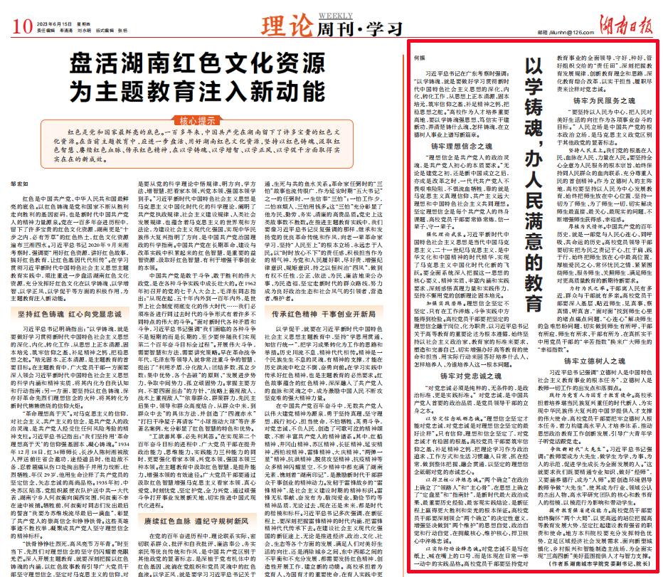 本网讯 6月15日,《湖南日报》10版“理论周刊·学习”刊发开云手机入口校长何振署名文章《以学铸魂,办人民满意的教育》,全文如下: