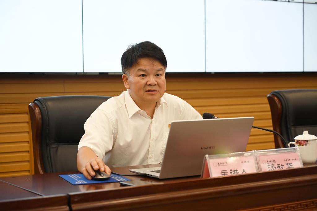 本网讯(记者 文彦波)7月7日,我校在图书馆报告厅举行2023年春季学期期末工作布置会暨“以学正风”专题党课活动。校党委书记汤放华讲授“以学正风”专题党课,校长何振部署2023年暑期及期末工作。副处级以上干部参会。