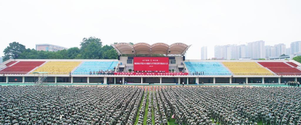 开学典礼后,学校举行了2023级新生军训动员大会。