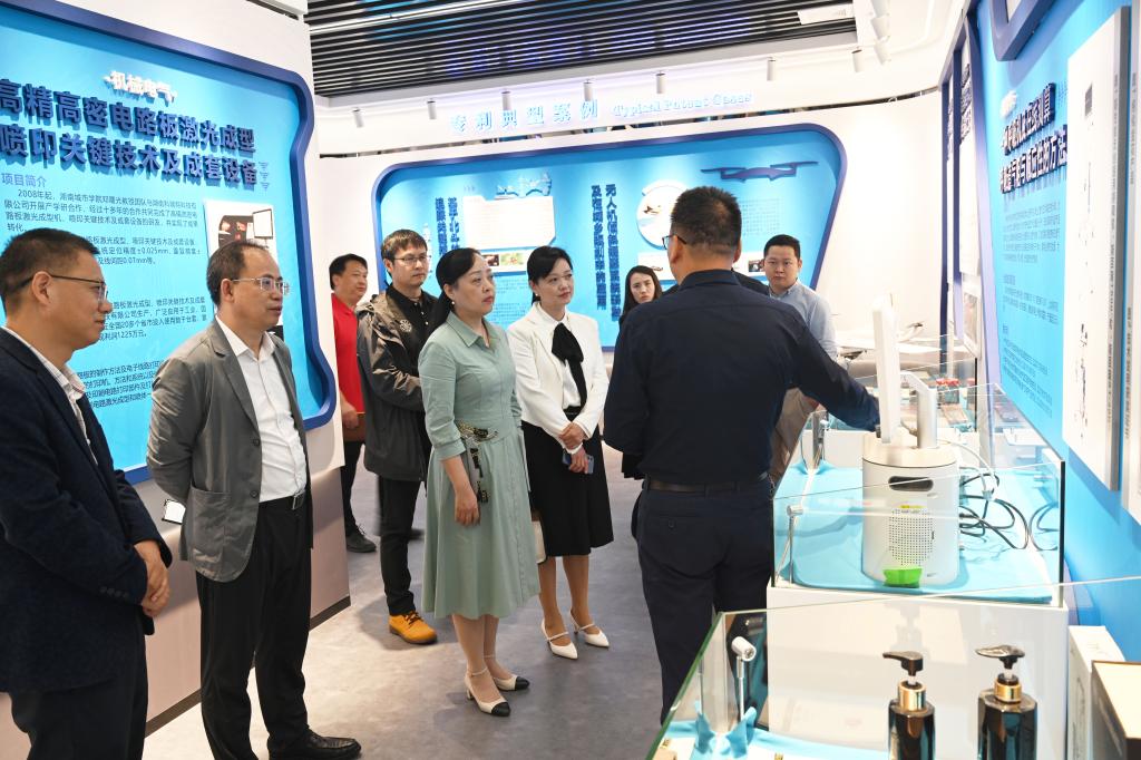 参观过程中,何振向何萍介绍了我校知识产权工作的基本情况,重点介绍了我校在获批省高校知识产权中心以来的工作进展情况。他表示,开云手机入口十分重视知识产权工作,一直把知识产权创新和转化应用作为学校科研工作的重要抓手,形成了以质量为核心、以转化为导向的知识产权管理工作体系和转化机制,并取得明显成效。