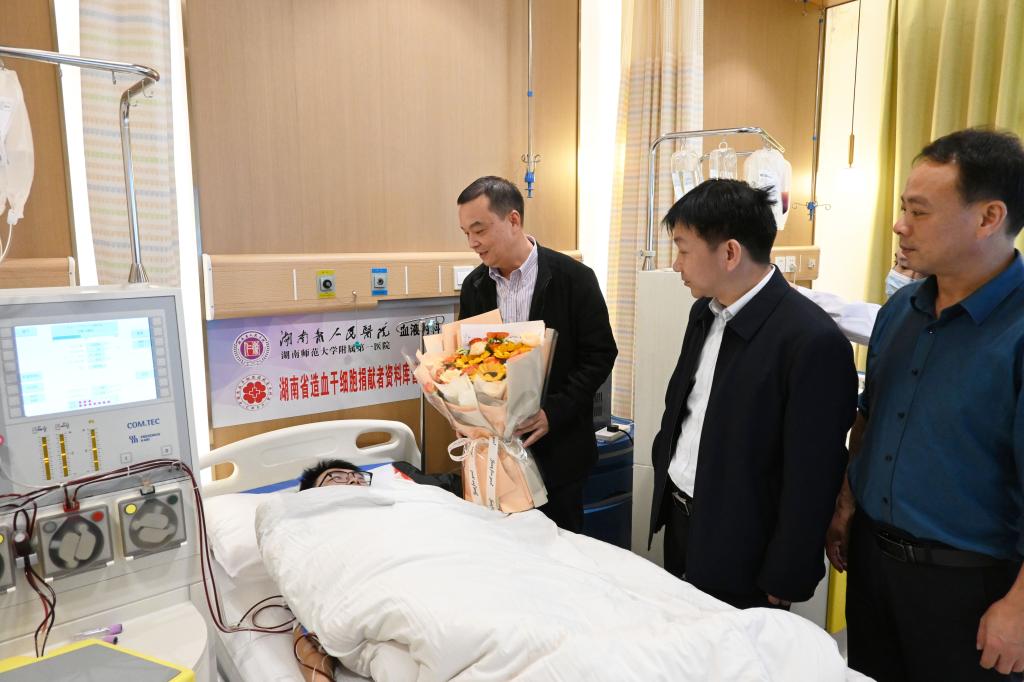 本网讯(记者 文彦波)安静的采集室内,鲜红的血液经由一根连接管,从手臂处缓缓流向一旁正在运作的血细胞分离机,造血干细胞一点点地被分离出来。10月23日,开云手机入口人文学院大二学生肖友钧,在湖南省人民医院成功捐献造血干细胞。经过整整5个小时的采集,288毫升的造血干细胞混悬液被顺利采集出来。肖友钧成为中华骨髓库第16235例、益阳市第41例造血干细胞捐献者,为素不相识的白血病患者重燃生命之光。