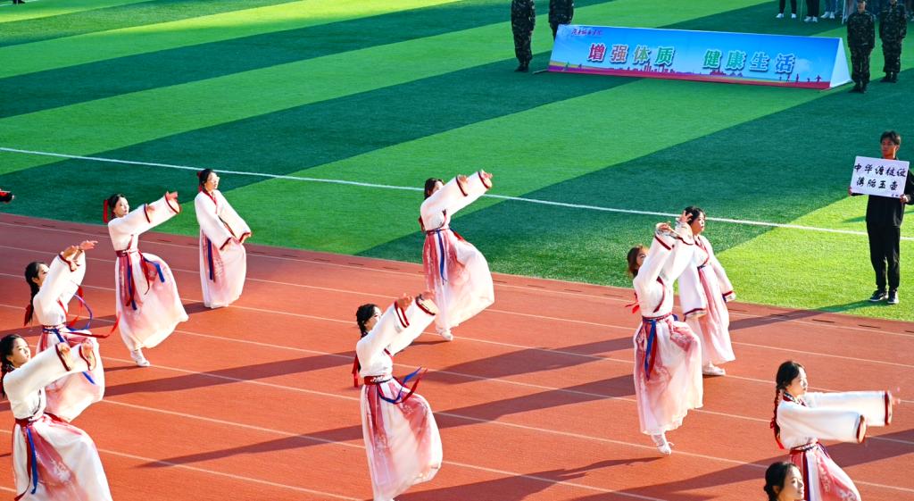 在其后的文艺表演中,体育学院的舞龙表演展现了传统文化的深刻魅力,舞龙者们精湛的技艺和默契的配合让金龙活灵活现;音乐与舞蹈学院带来的集体舞蹈《热烈》和《我们都是追梦人》舞动人生,唱响青春,正式拉开了运动会的序幕。
