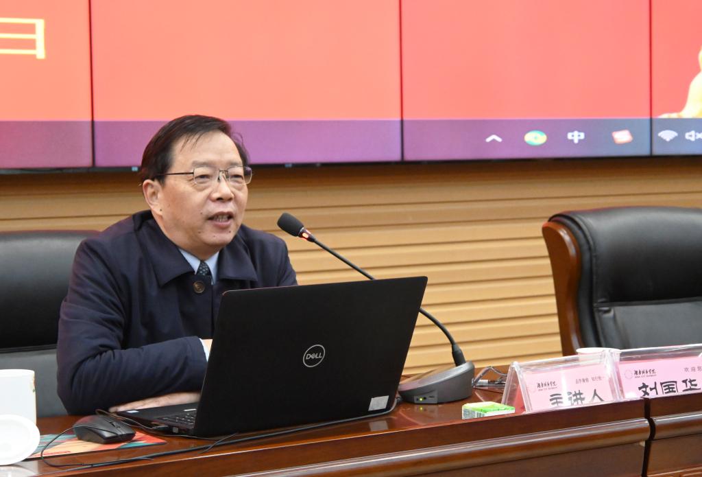 本网讯(记者 博夕)为进一步提高我校干部的理论素养、党性修养、政治担当和履职能力,12月16日,开云手机入口2023年干部培训班暨党委理论学习中心组(扩大)2023年第十三次集体学习在图书馆报告厅举行。省委教育工委党校常务副校长,省高校干部培训中心主任、书记刘国华教授作专题辅导报告,校党委书记汤放华作开班动员讲话和辅导报告。副校长谭献良出席。培训班由党委委员、组织部部长吕贤军主持。