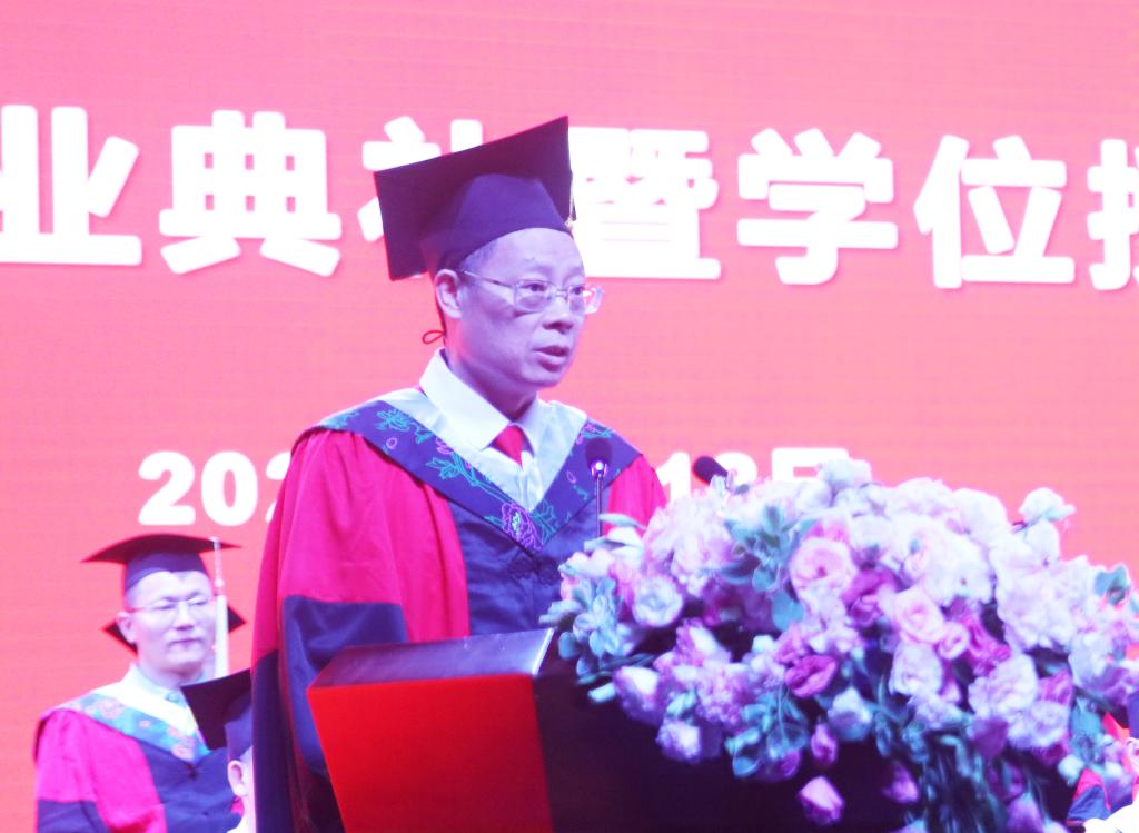 校党委书记汤放华主持毕业典礼,校长何振致辞,全体在家校领导,各二级学院书记和院长、各部门负责人、校友代表、毕业班辅导员齐聚一堂,共同见证毕业生的青春盛典。