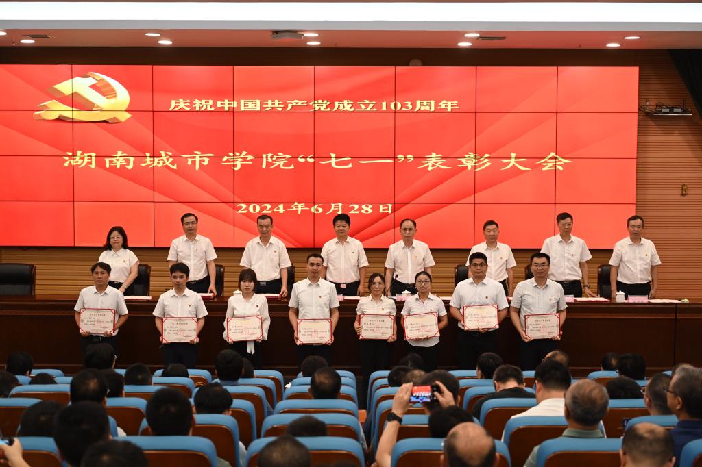 在庆祝中国共产党成立103周年之际,汤放华代表学校党委向奋斗在学校各条战线上的全体党员,致以节日的问候和良好的祝愿,向受到表彰的优秀个人和先进基层党组织,致以衷心的祝贺。他对全体师生党员提出三点要求:一要坚定理想信念,始终忠诚于党的教育事业。全校广大党员干部要深刻领悟习近平总书记对当前形势的重大判断,不断提高政治判断力、政治领悟力、政治执行力,忠诚于党的教育事业,坚守教育初心,牢记育人使命,确保党的教育方针和决策部署在学校得到全面贯彻落实,努力培养德智体美劳全面发展的社会主义建设者和接班人。二要勇于担当作为,推动学校事业高质量发展。要勇担党员干部之责,做到号召第一时间响应、指示雷厉风行执行、部署不折不扣落实,确保党中央、省委和学校党委的决策意图高效落实,落地生根;以更加昂扬的斗志、更加务实的作风,聚焦立德树人根本任务,深化教育教学改革,提升人才培养质量,加强科研创新攻关,优化管理服务,提高办学治校水平,为师生创造更好的学习和生活环境,推动学校各项事业不断迈上新台阶,为国家经济社会发展提供有力的教育、科技、人才支撑。三要勇于自我革命,营造风清气正政治生态。作为高校教师党员,要充分认识党纪学习教育的重大意义,自觉站在党和国家事业发展全局、推动学校事业健康持续发展的高度,扎实开展党纪学习教育,把党纪学习融入日常,坚持学用结合,不断提高理论水平,增强党性修养,做到学纪、知纪、明纪、守纪,把遵规守纪刻印在心,坚决同一切弱化党的先进性、损害党的纯洁性的问题作斗争,共同营造一个崇廉拒腐、崇尚实干的政治生态,将党纪学习教育成果转化为促进学校中心工作开展的有效举措,推动全面从严治党向纵深发展,为加快建设特色鲜明的高水平应用型大学、办好人民满意的大学提供坚强保障。
