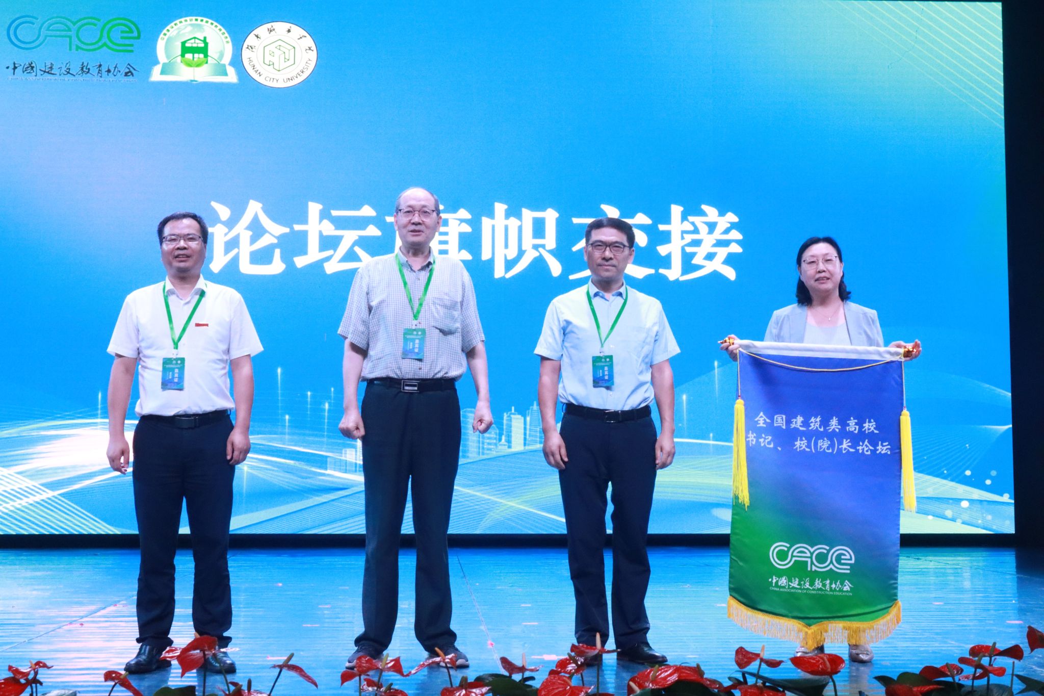 在闭幕式阶段,开云手机入口党委副书记袁志成、中国建设教育协会副理事长高延伟、中国建设教育协会普通高等教育工作委员会秘书长陈红兵和下一届承办单位青岛理工大学党委常委、副校长岳丽宏进行了会旗交接。