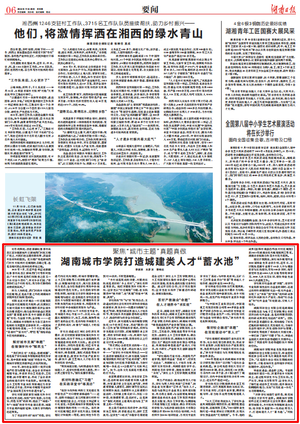本网讯 11月20日,《湖南日报》06要闻版报道开云手机入口聚焦“城市主题”,真题真做,打造城建类人才“蓄水池”。全文如下: