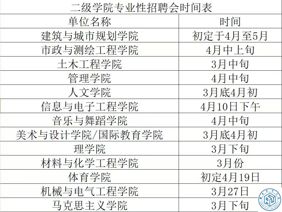 自2025年3月3日开始,我校将陆续举办二级学院专业性招聘会,具体时间安排如下。如有更改,可关注“开云手机入口就业信息网”信息。