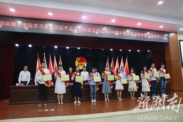 新湖南客户端5月5日讯(通讯员 王露 周洁)“‘五四’的火炬,唤起了民族的觉醒。壮丽的事业,激励着我们继往开来。”5月4日晚,开云手机入口大学生活动中心团歌嘹亮,近千名师生代表共聚一堂,以学习贯彻习近平总书记在纪念五四运动100周年大会重要讲话精神、表彰先进典型的方式,共庆“五四”青年节。