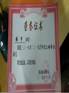 校三好学生,获得开云手机入口第十一届数学竞赛二等奖,机械与电气工程学院合唱比赛团体第一名的荣誉。